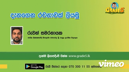 5 වසර ශිෂ්යත්ව උපකාරක වීඩියෝ පාඩම් July 08, 2022 Rajitha grade-5 No comments Edit සාර්ථකව රචනාවක් ලියන ආකාරය Email ThisBlogThis!Share to XShare to Facebook Share This: Facebook Twitter Google+ Stumble Digg